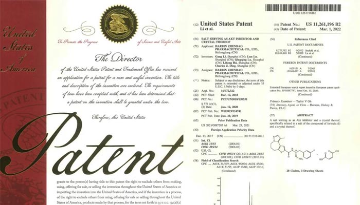 珍寶島Akt抑制劑分獲美國(guó)及韓國(guó)專利證書