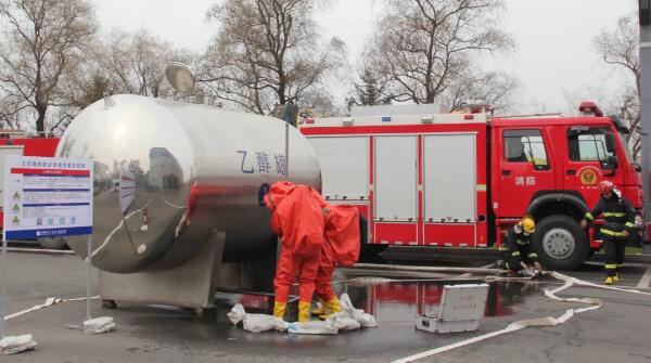 本次演練,模擬公司乙醇儲罐發(fā)生泄漏事故,公司立即啟動《危險化學品泄漏事故專項應急預案》,并向雞冠區(qū)應急管理局報告事故情況。雞冠區(qū)應急管理局啟動區(qū)應急預案,公安、消防、急救中心等政府救援部門以最快的速度趕赴現(xiàn)場,成立了以區(qū)政府為中心的應急指揮中心,在區(qū)領導的指揮下,在消防中隊等社會力量的不懈努力下,險情得到控制。